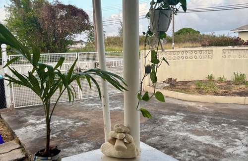Welcome to The Orchard our simple, peaceful bungalow nestled on a quiet hilltop, perfectly placed to catch the cool Caribbean breeze. Built from solid limestone, it retains charming original features like a raw limestone wall, vintage sliding door, and internal metal gate for added peace of mind.