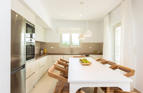 There is secure private parking within the villa’s premises for up to 6 cars • The property is well-equipped with all the mod cons; Fridge with freezer, Electric stove & oven, Espresso Machine (capsules) & Filter coffee machine, Microwave, Kettle, Sandwich Maker, Toaster, Juicer, Food Processor (Multi), Dishwasher, Washing Machine, Iron & Board, Hair dryer, First Aid Kit, Fire Extinguisher, Smoke Detectors, and a fully equipped kitchen.