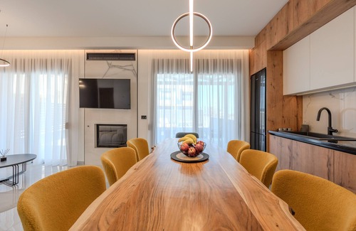 Rosy villas collection is a unique and stylish complex of villas offering the perfect setting for families, couples, or groups of friends seeking a relaxed yet well-connected holiday experience in Crete. Blending modern architecture with comfort and privacy, this elegant property accommodates up to 20 guests and consists of three fully independent properties, Rosy 1 & 2 identical villas and Little Rosy ,ideal for enjoying time together while preserving personal space and comfort. Rosy 1 & 2 are two identical villas next to each other. Each villa : accommodates up to eight guests each, features three elegant bedrooms and a convertible sofa bed in the living room. On the ground floor, guests will find a bright, open-plan living space complete with a cozy fireplace, smart TV, fully equipped kitchen, and a dining area for eight. This level also includes a serene double bedroom with its own veranda and a modern bathroom with a walk-in shower.Upstairs, two more thoughtfully designed bedrooms await, one with a double bed and the other with two single beds, sharing a spacious, sunlit bathroom with a walk-in shower. Each bedroom opens onto a private balcony, allowing guests to enjoy calming views and abundant natural light. All bedrooms are equipped with smart TVs, and the villa features air conditioning throughout and high-speed Wi-Fi for total convenience.Step outside to your private oasis: a 28 sqm swimming pool (7m x 4m, 1.5m deep) surrounded by sun loungers, beanbags, umbrellas, and a refreshing outdoor shower. Enjoy al fresco dining in the outdoor BBQ area, perfect for long, leisurely meals under the Cretan sun.Next to villa Rosy 2 is Little Rosy, is a stylish and cozy 65-square-meter haven, thoughtfully designed in a modern mezzanine style. Perfect for couples, small families, or friends, this retreat offers a peaceful and charming escape in the heart of Crete.Blending contemporary design with homey comfort, the open-plan layout features a bright living area with a fireplace, a smart TV, and a plush convertible sofa bed—ideal for accommodating two extra guests. The fully equipped kitchen includes a central island with four stools, perfect for enjoying breakfast, cocktails, or shared meals.On the main level, you'll also find a spacious bathroom with a sleek walk-in shower. A wooden staircase leads to the airy mezzanine bedroom, where a cozy double bed rests beneath high ceilings, creating a warm and inviting atmosphere. The bedroom also includes its own TV for added comfort. Throughout the home, you'll enjoy air conditioning and high-speed Wi-Fi for maximum convenience.Step outside and immerse yourself in relaxation. Unwind in the private jacuzzi (fits up to four guests,operating times from 09.00 to 19.00), lounge on the sunbeds beneath umbrellas, or enjoy alfresco dining in the outdoor dining area, complete with a BBQ—perfect for long, leisurely meals under the Cretan sun.All the 3 properties are connected as the gates between them can be open. Ideally located just a 10-minute walk from one of Crete’s largest waterparks (open may to october) and a short drive from the lively resort town of Hersonissos, the property offers the perfect balance of tranquility and access to beaches, restaurants, and nightlife. Just a short drive from Heraklion Airport and the scenic towns of northern Crete, this charming retreat is your perfect base for a romantic escape or a memorable small-group holiday.