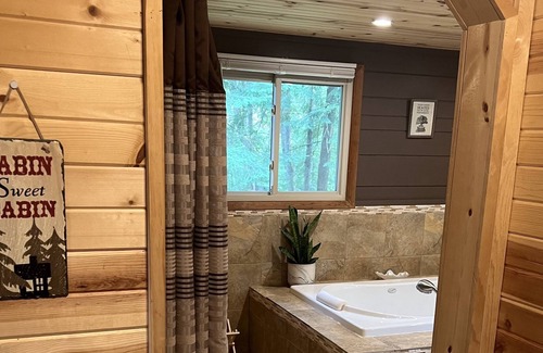 Unplug and unwind at this waterfront cabin, built with couples and small families in mind! Wooded lot on both sides semi-private. Perfect for honeymoons and anniversaries. Celebrate your love