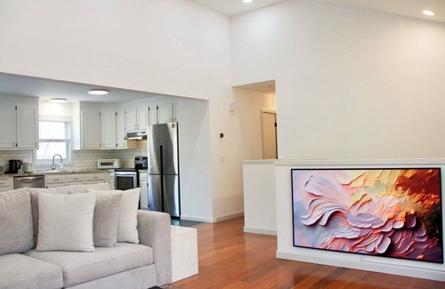 Guests will appreciate contemporary amenities, including air conditioning, heating, Wi-Fi, and fitness equipment. Entertainment is readily available with a selection of games, flat screens, and a Bluetooth speaker system. For added convenience, a washing and drying machine is on-site. This stylish home provides a superb and cozy escape for any traveler.