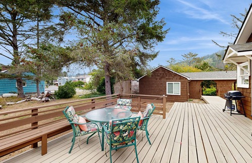Plan the ultimate trip to the beach with your family and four-legged friends in tow in this charming cottage offering large outdoor entertaining areas, easy beach access, and a unique detached cabin! The home is located right next to the historic Neskowin Marsh Golf Course's second tee-box, making it ideal for golf lovers and beach goers alike.