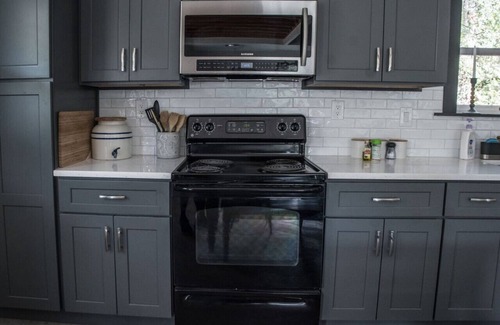 Come disconnect on our unique renovated barn home on 3 quiet acres. Yes, it was once a real barn! The living room with TV and pool table will keep you entertained. There is a full kitchen with stove, fridge, dishwasher and utensils for cooking and a drip coffee maker for your coffee.