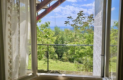 Description: Ground floor of a two-family building. Living area with kitchenette and dining table - master bedroom with double bed and two single beds - second bedroom with double bed - bathroom - large garden equipped with table, chairs and pergola - private and reserved parking space. Delightful sea views from many of the property\'s windows.