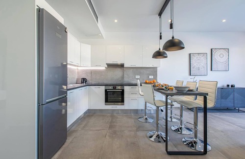 Ground Floor: Open plan kitchen/ living/dining area(oven, microwave, dishwasher, washing machine, A/C, Smart TV, WiFi) with patiodoors to terrace. Double bedroom (A/C) with en suite shower room and patio doors to terrace. Doublebedroom (A/C) with en suite shower room and patio doors to terrace. Outside: Sun terrace. Seating and dining terraces. Private parking. In-built barbecue. Private infinity swimming pool (7.95m x 3.9m) with uniform depth of 1.5m