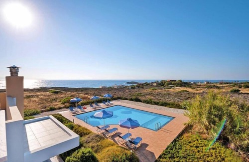 Well-maintained holiday home with two apartments in an ideal location, just 50 meters from the sea and a few minutes' walk from the beautiful sandy beaches of the Akrotiri Peninsula. Relax by the spacious saltwater pool (with a shallow area for children) and enjoy the wonderful view of the blue sea from the furnished sun terrace. Weekly intermediate cleaning included. You will spend peaceful holidays in the midst of a picturesque environment with high mountains, steep cliffs and green landscape. The small town of Stavros, where the legendary film Alexis Zorbas was filmed, with a few shops and taverns is 500 m away Sea, we recommend a visit to the wellness oasis of the Hotel Pearl Beach about 500 m away Mobility : Not suitable for people with reduced mobility
