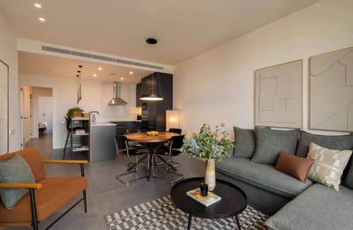 Sant Pau Balcony is a brand-new, trendy 2BR property located in a quiet residential neighborhood of Barcelona, 3 blocks away from the stunning masterpiece of Catalan Modernism architecture, Hospital de Sant Pau. The iconic Sagrada Familia and the Avinguda Gaudí are also just a 10 minute walk from the apartment.