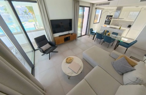 Santa Barbara Heights – Luxury 2-Bed with Terrace Overlooking Pools - by Mediterra Rentals is located in El Faro. Santa Barbara Heights – Luxury 2-Bed with Terrace Overlooking Pools - by Mediterra Rentals provides accommodation, featuring Wheelchair Accessible, Fireplace/Heating, Laundry, among other amenities. This Apartment features Wheelchair Accessible, Fireplace/Heating, Laundry, to make your stay a comfortable one.
