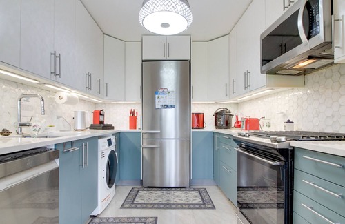 KITCHEN: Fridge, microwave, oven, stove, dishwasher, coffee maker, dishware & flatware, spices