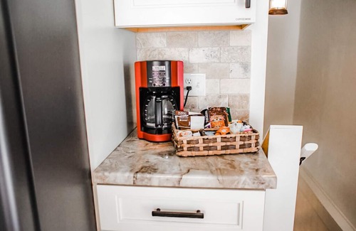 Cook with ease in the fully stocked kitchen, share meals at the dining table, and take advantage of the washer and dryer during longer stays.