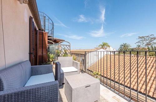 Cozy and modern apartment with terrace, just a few steps from the charming Piazza Magione.The apartment is located on the third floor of a building between Piazza Magione and Via Alloro alla Kalsa and spreads on two levels. The entrance opens onto a hallway, furnished with a desk and chair, which gives access to the master bedroom with a queen-size bed, a modern bathroom with shower, and the stairs leading to the living area. The upper floor houses a large and bright open space furnished with a sofa, a television, a dining table, a fully-equipped kitchen with oven and kettle, and access to the beautiful terrace overlooking the roofs and domes of the center of Palermo. Guests will benefit from the washing machine, iron, air conditioning, heating and wi-fi.*Upon arrival or a few days before arrival it may be required to pay a tourist tax, which varies according to local regulations. You will find your reservation details within the Guest Area of Wonderful Italy.Palermo, one of the most beautiful cities of art in the country and the capital of Sicily, offers plenty of wonderful UNESCO heritage sites that can be visited in the four historic districts of the city. In this regard, tourists can take part in the "Baroque itinerary of Palermo' to visit the main monuments of the city, such as the Church of the Holy Savior, the Church of Santa Maria del Monte Oliveto and the Church of the Conception. The city also offers the opportunity to participate in the "Tour of the Historical Markets of Palermo' which will allow guests to explore the markets of Ballarò and Capo. It doesn’t matter if it’s lunch or snack time, it is strictly required to taste the dishes with your hands only! This tour will also give tourists the opportunity to admire prominent buildings, streets and squares.Palermo central station is 700 m away from the apartment, while Palermo Falcone e Borsellino Airport is 45 minutes drive away.