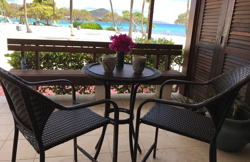 Whether you want to watch the waves from a beach chair, paddle board your way along the shore, snorkel or dive through the coral, or sail to nearby islands, you will LOVE this condo by the sea. This ground level unit is quite literally a few steps from the turquoise waters of Sapphire Beach, one of the most beautiful beaches in the Caribbean. This corner apartment is flooded with light, has an extended wrap around patio, and all the conveniences of a home away from home. Recently renovated, you will enjoy luxury linens, comfortable furnishings, cable TV, Wi-fi, and much more. Close to the many eateries and the night life of Red Hook, Sapphire Beach also offers all levels of water sports from snorkeling and paddle board rentals, to daysails that leave from the Sapphire Marina.