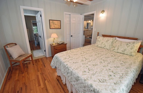 5 Bedrooms: 3 Up, 2 Down (No inside stairway) | 3 Bathrooms: 2 Up; 1 Down | Beds: 3 Queens Up; 2 Queen Down