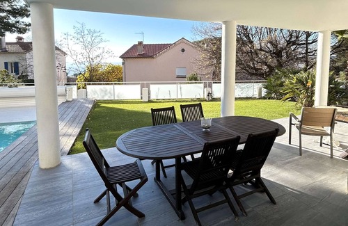 You have a large furnished terrace (barbecue), a garden and a beautiful swimming pool with sea view.