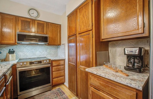 The updated kitchen offers high-end stainless steel appliances, plenty of counter space, and everything you need to make a meal right from home.