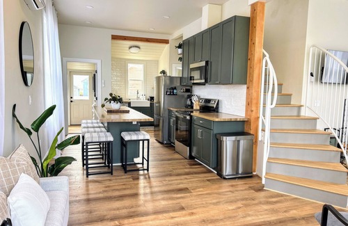 Every corner of the house reflects modern luxury, from the stunning wall-to-ceiling tiled stand-up shower to the sleek stainless steel kitchen appliances. Enjoy the convenience of an in-unit dishwasher, washer, and dryer, enhancing your stay. Unwind with entertainment options like smart TVs in both the upstairs and downstairs areas.