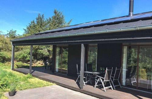 Layout: open kitchen(cooker(electric), coffee machine, microwave, dishwasher, fridge), Living/bed room(TV(satellite, german television channels, danish TV channels (DR1 and TV2)), DVD player, high chair), bedroom(double bed, children's bed), bedroom(double bed), bedroom(double bed), bedroom(2x single bed), bathroom(tumble dryer, washbasin, shower, toilet, washing machine), bathroom(washbasin, shower, toilet), mezzanine(2x single folding bed), Bubble bath(indoor, heated, 2 persons), sauna(indoor, heated, 2 persons), heating(electric), terrace(roofed), BBQ, geothermal energy