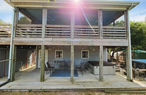 Welcome to your perfect getaway! This spacious property features a huge 32 ft by 16 ft above-ground pool, a relaxing hot tub, and a private dock for fishing or docking your boat and kayak. Enjoy stunning canal views, a driveway for parking, and four beach parking passes for easy access to the shore With a screened-in porch, full-sized propane grill, and a fenced yard for your furry friends, this home is designed for comfort and convenience