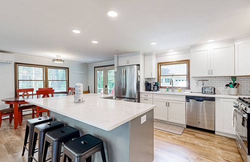Find yourself surrounded by lush greenery, towering trees, and peaceful sounds of birds at this tranquil escape just south of Readfield. There will be no dull days on this vacation with three beaches within walking distance and four kayaks provided to get you out on the water in no time. Other activities included hiking, biking, finishing, swimming, or checking out the shops and restaurants in town. Plus, you can always stay right at home and fire up the gas grill on the deck to host summer cookouts!