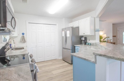 This peaceful home has everything you need for a fun and relaxing stay. Under the home is a half bath, elevator, comfortable patio furniture, small refrigerator, bar area (no sink), porch swing, foos ball table and Pop A Shot. Storage cabinets house a few fishing poles, a cooler, sand toys, 4 beach chairs, 2 beach umbrellas & a beach blanket for you to use during your stay. There are 2 adult kayaks & life jackets, and 2 child kayaks & life jackets that can be used in the canal. All this and still room to park under the house if you choose!