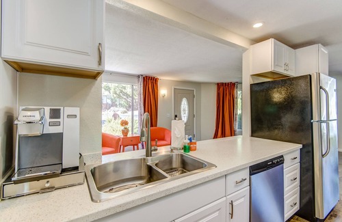This single-level manufactured home was recently remodeled and features 1,440 square feet, two bedrooms, and two bathrooms to accommodate up to four guests.