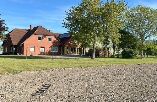 The Bock holiday farm is nestled between cabbage and cereal fields, on the outskirts of the North Sea spa Friedrichskoog. As arable farm, we offer the whole family an insight into agriculture. 2 apartments, each about 55 m² for four to five persons. Master bedroom with double bed, bedroom with bunk and single bed. Living room with fully equipped kitchen, microwave. Shower / WC. 2 apartments with about 30 m² or about 40 m² for one to two people. Combined living / sleeping area with kitchenette, or Kitchenette. Shower / WC. All apartments are non-smoking quarters, located on the first floor (stairs with child safety lock) and are equipped with satellite TV, clock radio and hairdryer. Highchair and cot if desired. Trampoline, sandpit, beach chairs at the house, large Kettcars. Windproof seating area in the garden with barbecue.