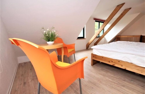 Rustic semi-detached house with an open fireplace in a quiet area on Lake Krakow. The semi-detached house, partly furnished in a hunting style, with 1,000 sqm of fenced property is located in a residential area on the outskirts of the village in the middle of the Nossentiner Heide nature park, just 150 meters from Lake Krakow. The large sun terrace is the best place to relax when you return from one of your excursions. Glave is located on the south-eastern edge of the Krakower Obersee in the Nossentiner/Schwinzer Heide nature park. White-tailed eagles, ospreys and bitterns breed in the nature park with 60 lakes and rivers, and bison are also bred on the Damerower Werder. It is almost ten kilometers to Krakow am See, Waren an der Müritz is 48 kilometers away. Highlights included: All consumption-based energy costs Activities nearby: Lake Krakow is considered a paradise for water birds. Around 300 kilometers of cycling and hiking trails and 160 kilometers of bridle paths offer the best conditions for exploring nature without a car. Excursion tips: Waren an der Müritz, Plau am See or the Hanseatic city of Rostock.