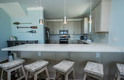 Abracadabra checks all the boxes. This newer (2018) home accommodates large groups, is pet friendly and has easy access to the beach, both pools and tennis/pickleball courts. Oh wait, we forgot to mention the spectacular views! This 6 bedroom, 4.5 bath home has both upper and lower decks and the beach access boardwalk is, literally, at the base of the driveway. LVP flooring, stainless appliances and quartz countertops means you'll be vacationing in style. Extras include an ice maker and a beverage fridge, both very important for a successful beach vacation! Pro Tip: Take the boardwalk and go right to the beach and left for the fastest route to both pools and tennis/pickleball courts.
