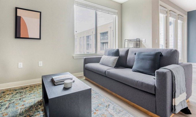Discover the best of Austin, with this one-bedroom Central Austin apartment. It’ll be easy to simply show up and start living in this elegantly Blueground furnished apartment with its fully-equipped kitchen, spacious living room, and our dedicated, on-the-ground support. (ID #ATX121)