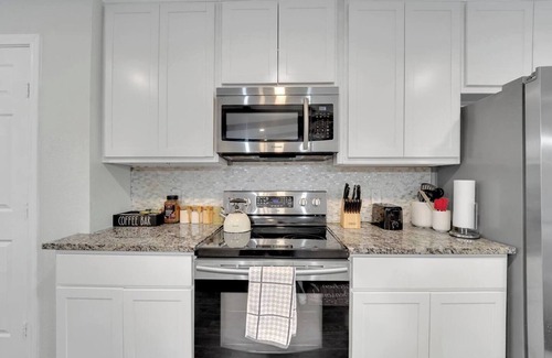 A fully equipped kitchen with stainless steel appliances, ample counter space, and all the cookware you need to prepare your favorite meals.