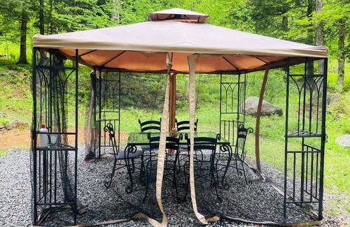 Enjoy our lawn games, kayaks and river tubes on our secluded property. All of the fun that comes along with camping, but the luxury of comfortable beds and a hot shower. Enjoy star gazing? We also have outdoor camping cots to lay outside and look at the stars. The best seat in the house is the fire area which offers Adirondack chairs and overlooks the river and mountains. Doesn't get any better than that!