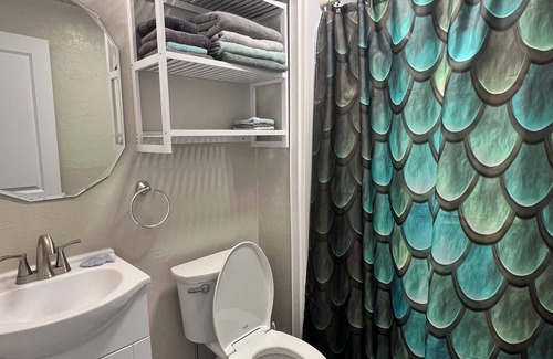 In addition to the Big House on our property, we have a 4-plex, with four studio apartments. Two face the water, two face the street. Serenity #3 is a water facing one bedroom studio apartment. With a king sized bed, kitchen with large convection oven, two burner cook-top, microwave, toaster and coffee pot. A bathroom with an over-sized stall shower. Relax and watch the gorgeous sunset from your deck, just steps away from the sea wall and fire pit. This unit is about 250 sq. ft. Includes towels, linens, dishes, glassware, utensils, pots and pans. Air condition is through a wall unit. 24-inch Smart tv, with commercial free Hulu Plus. NBC, ABC, and CBS as well as local channels via antennae. No cable in the fourplex, only in the Big House, which is listed as Serenity Bay.