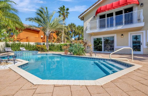 Experience the ultimate in luxury, comfort, and convenience in the prestigious Bel Air neighborhood. This spacious family vacation home is ideally located directly on the Intracoastal Waterway in Lauderdale-By-The-Sea, just one block from the beautiful Lauderdale-by-the-Sea Beach. The stilted design of this home creates an expansive outdoor living area, complete with outdoor dining, a private pool, and a relaxing poolside lounge. Inside, the home is perfectly balanced for both togetherness and p
