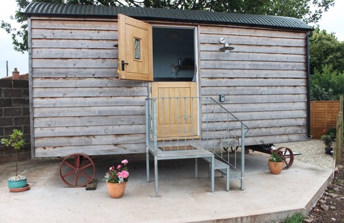 beautiful shepherds hut,on a dairy farm.self catering hoilday accommodation, sleeps 2 adults, the hut has fully equipped kitchen, separate toilet and shower room,it is set in beautiful countryside and enjoys spectacular views, and easy access to local attractions. on arrival guests are welcomed with a delicious west country cream tea, tea coffee. toiletries, towels slipper dressing gown, for your usenew this year own private drive way to this off the lane new this year wififor your use