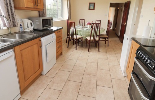 This detached bungalow rests in Wem, Shropshire and can sleep six people in three bedrooms.