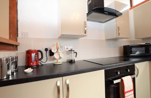 The new well equipped kitchen features modern appliances, including a full-size oven and hob, fridge/freezer, microwave oven and dishwasher. The open dining area seats up to 4 guests.