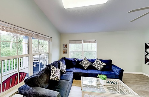 This renovated eight-bedroom Tarpon Springs home comprises two side-by-side duplexes. Two heated swimming pools ensure enough room for all your guests to splash, and plenty of outstanding beaches await within a quick drive of this charmed old Florida neighborhood. It's just three blocks from the beach park, with cabanas, picnic tables, and grills. There is also a large playground and volleyball area. Or try the local favorite, Miss Vicki's on the River! Close-by beaches include Anclote Key State Park and Caladesi Island.