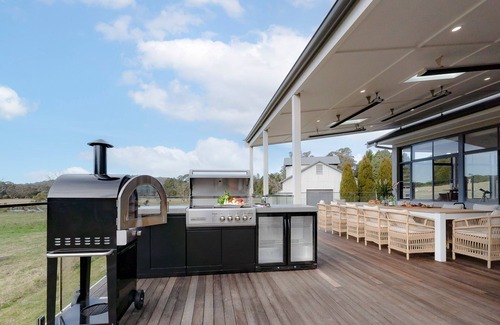 Welcome to Silos, a luxurious rural homestead and working farm nestled on 50 picturesque acres in the Southern Highlands near Robertson, NSW. Inside, you'll find five spacious bedrooms, a fully equipped chef’s kitchen with modern appliances, and inviting living areas. The pet-friendly homestead features beautiful high ceilings, ducted reverse cycle air conditioning, a central fireplace heating the living room, dining area, games room and kitchen, a sitting room with slow combustion fireplace, and underfloor heating in the bathrooms - ensuring comfort throughout the seasons. Relax in the spa bath, enjoy entertainment in the games room with a pool table, table tennis, and smart TV, or catch up on work with the property’s Wi-Fi and laptop-friendly workspaces.