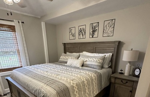 This beautiful home is a remodeled 2 bed/2 bath Cozy Cottage with a fully stocked kitchen with a laundry closet to the side with a brand new washer and dryer. The Master bedroom has a king-size bed and bathroom attached. There is also a pack-n-play in the master closet for a baby. The guest bedroom has a full-size bed. The living room has a 65-inch smart TV for all your viewing needs and comfortable seating with a queen sofa sleeper. The back porch has a conversation set, 3 piece bistro set, and a propane grill. There is High-speed Wifi and also board games to enjoy in your downtime. Both bathrooms are stocked with towels, mini shampoo & conditioner plus soap. You are 12 minutes from Six Flags over GA, 20 minutes to Truist Park and the Battery, and 30 minutes from GA Aquarium. If you like Cajun food we have one of the best restaurants(Gumbeaux) in GA located five minutes away. If you love hiking and outdoors, Sweetwater Creek State Park is 7 miles away and Silver Comet Trail is 10 miles away if you like to bike or walk.