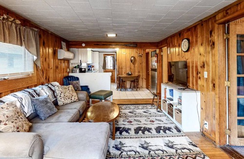 The three bedroom cabin can hold up to 6 guests. The cabin has several amenities you may not find at all vacation rentals. It has a 30 foot dock, gas fireplace, wall mounted air conditioning, grill, stove, porch, dock, 2 kayaks and a campfire area with firewood. Pets are welcome! The cabin is on a private road with only a few camps and there are friendly neighborhood dogs that may welcome you upon your arrival.