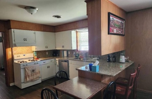 3 bedroom home(blackout blinds in 1 bedroom for day sleepers) with 1 bath, full kitchen, laundry room, living room, Den, back patio, grill, fire pit and wifi. Beautiful star filled skies and sunsets over Lake Dardanelle. Little to no light pollution.
