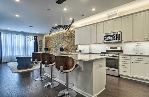 TOWNHOME LIVING: 3 Smart TVs, home office space, modern interior design, balcony w/ outdoor seating, dry bar, 2-person dining table, breakfast bar w/ seating