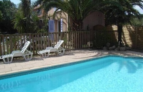 This is a typical air-conditioned near the outdoor catering villa 'campéole Southern Cross' charming detached villa but completely separated by vegetation, oleander and cypress trees, palm trees, with a nice pool of 10 50 on 4.50 m, two bedrooms, two large beds, a pretty Provencal kitchen with warm tones and pool maintained by a landscape caretaker, a nice room renovated shower toilet, garden completely closed. Private parking space outside.