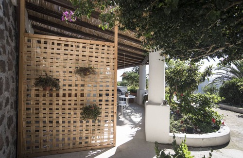 Stromboli Ponente apartment is composed of a double bedroom, private bathroom and outdoor kitchen for exclusive use, covered by a canopy roof typical of the islands. Table, chairs, sofa and a piece of furniture furnish the modest terrace with sea view and a small garden with barbecue on the side.