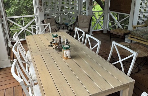 This beautiful southern home in the heart of Memphis in Midtown’s historic Central Gardens is minutes from downtown. This house is perfect for large families or groups because of the large public spaces and the many secluded private spaces and layout of the home. Guests will feel they have plenty of space to be together but also have privacy when needed. 4 outdoor patios/decks around the house in shaded yard give much flexibility. Luxury beds and linens as well as all your needs are included.