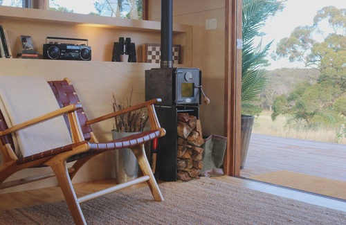 Venturing out of the bi-fold doors, the cabin's private deck offers a serene spot to unwind and soak up the tranquillity around you. Keep an eye out for wildlife including kangaroos, wombats and birds amongst the cattle and sheep on the paddocks. Savour a glass of locally produced wine while taking in the panoramic views of the vineyard and the rolling hills beyond.
