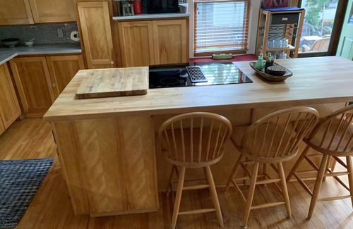 Lovely spacious family home with a gas fire place for winter guests, and central air conditioning for summer guests, a large fully equipped kitchen/family room with TV, seating at center island, full dining room, living room, 2 full bathroom, one on the main floor. This home can sleep 4, one master bedroom on the 2nd floor with a king size bed, and one bedroom on the main floor (off the bathroom) with 2 twin beds. In the summer, there is a beautiful sunken garden and patio for barbecues and eating out.
