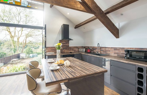 Sovereign Suite is a romantic luxury penthouse at Bonville’s Court Country Park, a small exclusive family run caravan park on the edge of the seaside village of Saundersfoot. The owners have beautifully converted the old power house at the back of the park, a characterful relic of the areas coal mining history and the colliery that once operated on this site, into a wonderful spa with the Sovereign Suite above.Guests staying, while having daily use of the gym and spa facilities benefit from exclusive use from 8pm till 9pm every evening - what a way to relax at the end of the day with the choice of a sauna, steam room and spa pool! Your private stairs lead up to the open-plan living space in the roof of this historical building where the character and features of its industrial past have been retained. Both gable ends have been glazed and one Juliette balcony added to really maximise the views over the valley. Furnished to a high standard with an L-shaped modern, fitted kitchen area, comfy sofas to relax on, all offering lovely views; while a king size bed and separate shower room with double shower complete the accommodation.You are welcome to enjoy the landscaped grounds of the Country Park, or Saundersfoot with its range of facilities and glorious sandy beaches are just a 10 minute walk away. Join the Pembrokeshire Coastal Path and explore this stunning coastline, traveling east and walk through the tunnels, left from the areas industrial coal mining history to the beaches of Coppet Hall with its award winning restaurant, Coast, or further on is Wiseman's Bridge and Amroth, both with beachside pubs where you can enjoy a drink or meal overlooking the beach and sea ready for the return journey.A foot path that recently opened leads from the train station and runs past the entrance to the park and down into Saundersfoot and the golden beaches.The medieval walled town of Tenby lies to the west with its range of pubs, shops and restaurants set on pretty cobbled streets, as well as a picturesque harbour and wonderful sandy beaches. The area is popular for water sport enthusiasts and there is a choice of golf courses to try within a short drive including Tenby Links and Trefloyne Country Park.Perfect for a romantic break, what better way to unwind after a day on the beach or walking the Pembrokeshire Coastal Path, than taking advantage of your own excellent spa facilities in the evening.Shares the same location as 43100 Courtlands and 43527 Tower Cottage.Onsite spa facilities including a steam room and sauna, pool spa, experience shower and gym included - No under 10 year olds. Open to onsite guests daily from 10am - 7pm. Closed Sundays. Please book direct with owner.**IMPORTANT**The pool and gym facilities are currently available for guests to use by appointment only.This may change going forward depending upon legislation and recommendations. If facilities are available during your stay these will be subject to the usual gym and pool conditions and undertaken at your own risk. The safety and security of guests is ours and the owners highest priority.