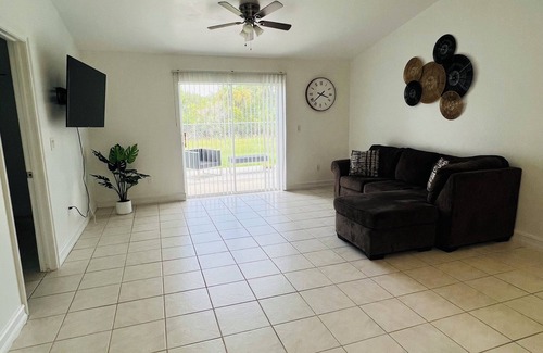 Nestled in Lehigh Acres, this delightful house offers a tremendous stay for guests. With 4 bedrooms including 3 queen beds and 1 bunk bed, along with 2 bathrooms equipped with showers and hair dryers, this beautiful property ensures a comfortable and tranquil experience. AC, WiFi, a washing machine, and heating are just a few of the amenities provided. It's easy to see why you'll be able to unwind at our place.