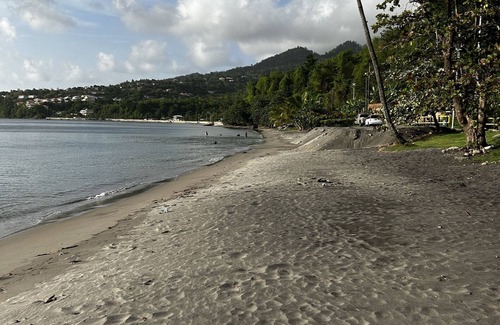 Spacious 4-bedroom residence featuring a ground floor apartment layout. Two of the bedrooms are equipped with air conditioning, while the remaining two are furnished with soothing ceiling fans. Additionally, the living and dining area benefits from a cooling AC unit. Located 15 Minutes from Roseau! 18 Minutes from Merot Beach!